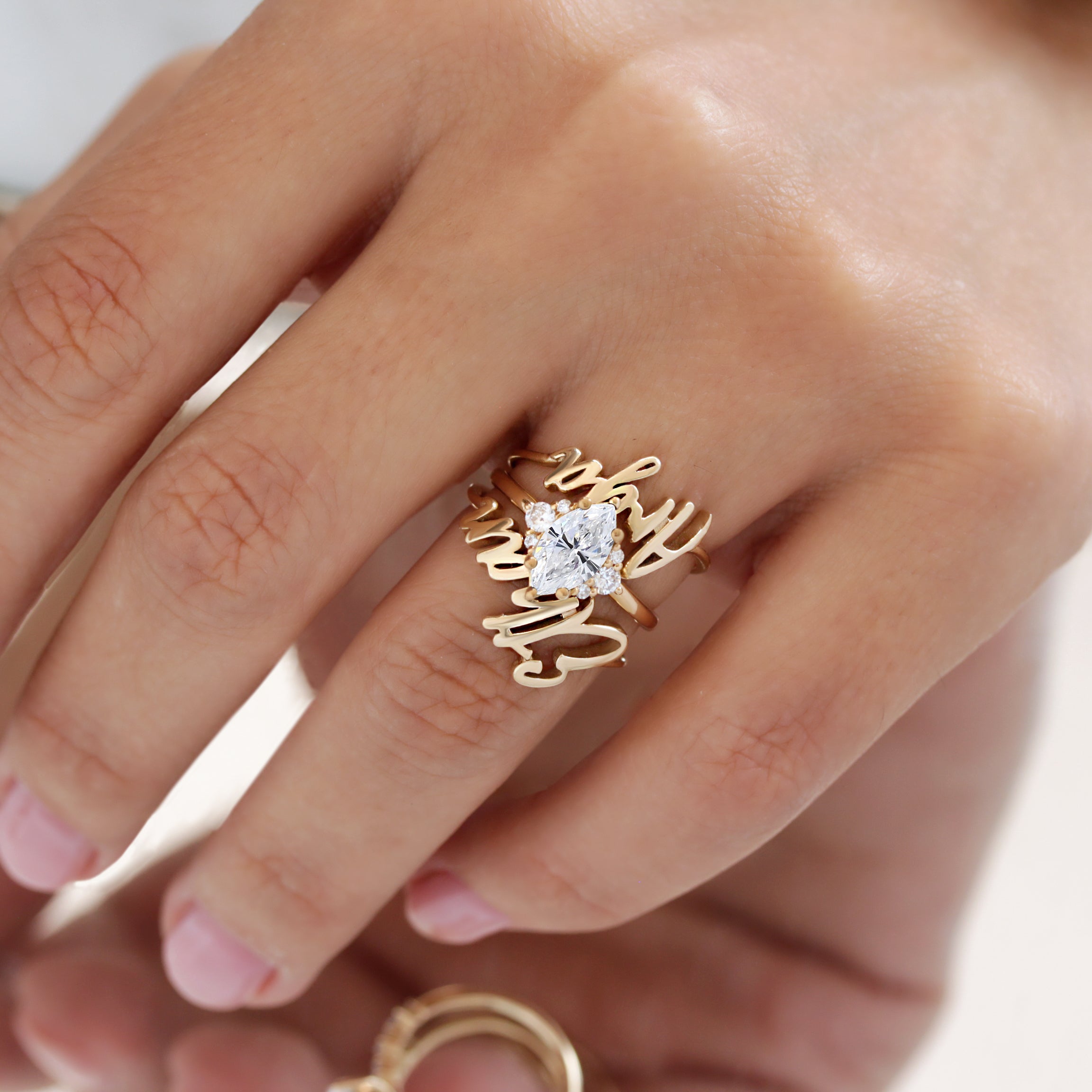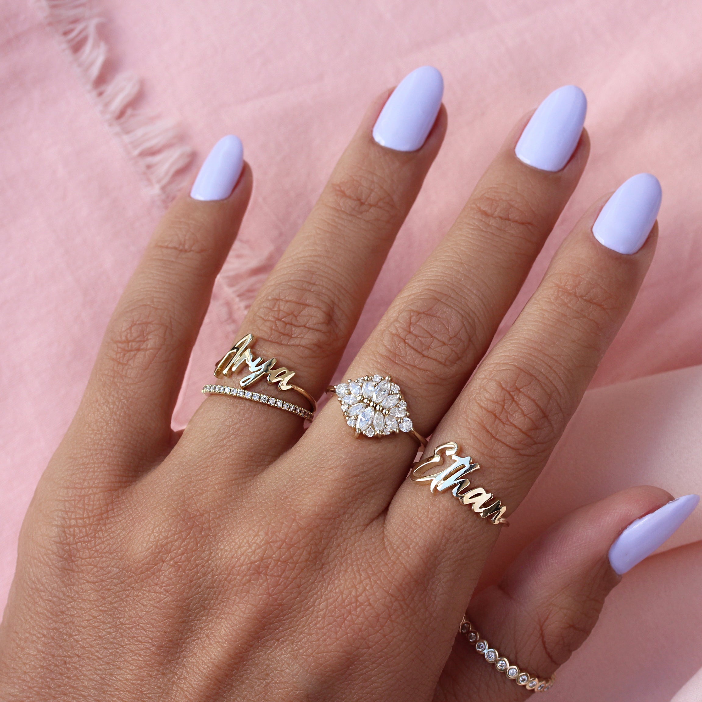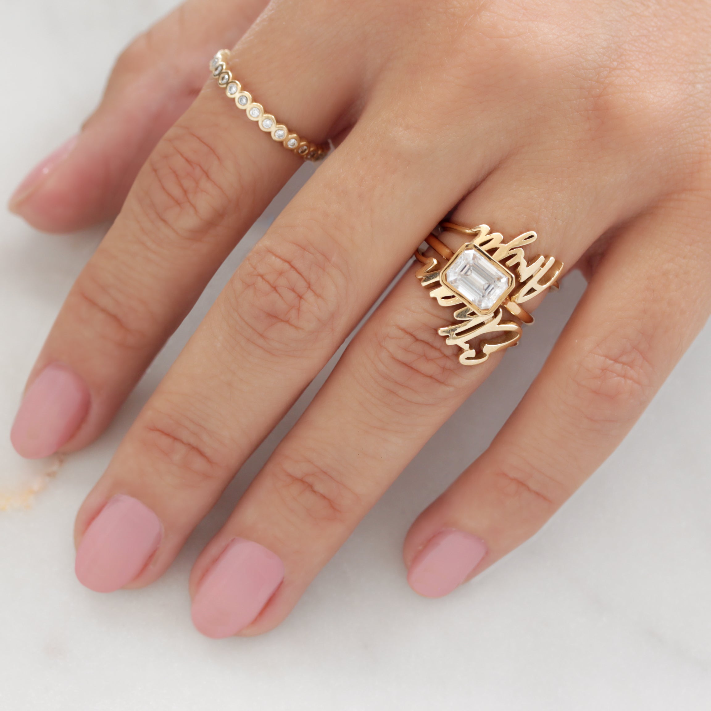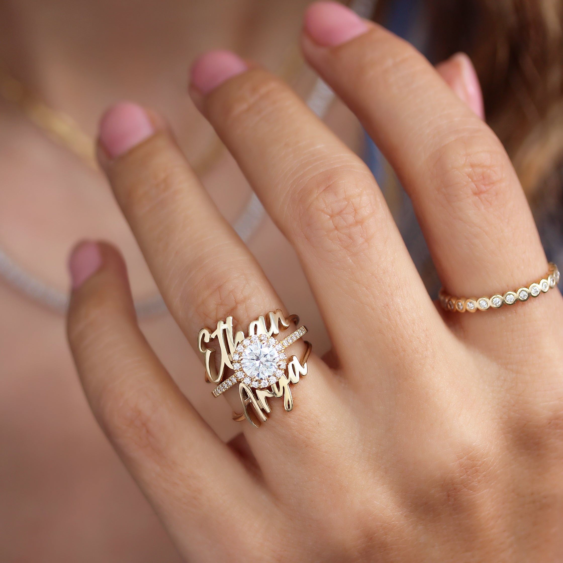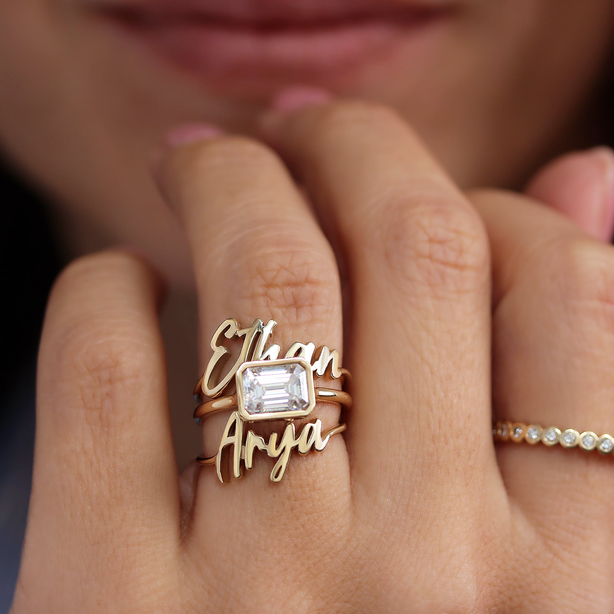 I really love this look! Your wedding band is a symbol of your eternal commitment, and choosing one that resonates with your unique love story is paramount. If you're drawn to the idea of infusing a personal touch into this significant piece of jewelry, a gold name ring might be the perfect choice. In this article, we'll explore why a gold name ring can be a meaningful and stylish option for your wedding band.