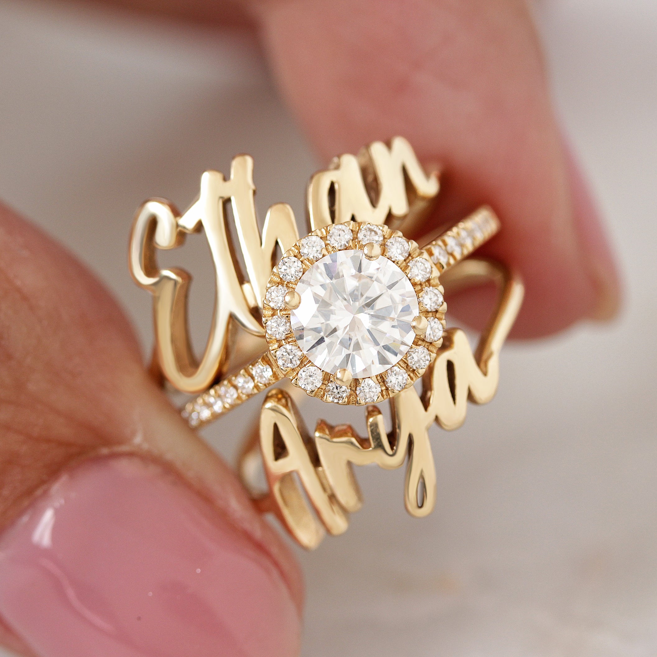 A wedding band is more than just a piece of jewelry; it's a symbol of your lifelong promise to one another. Choosing a gold name ring allows you to infuse this symbol with even greater personal meaning. It's a statement of your unique connection and a celebration of the love you share. Embrace the beauty and significance of a gold name ring as you embark on this beautiful journey together.
