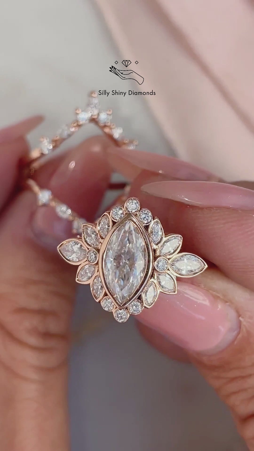 Marquise Diamonds Bezel Set Engagement Ring, Alicent ♥