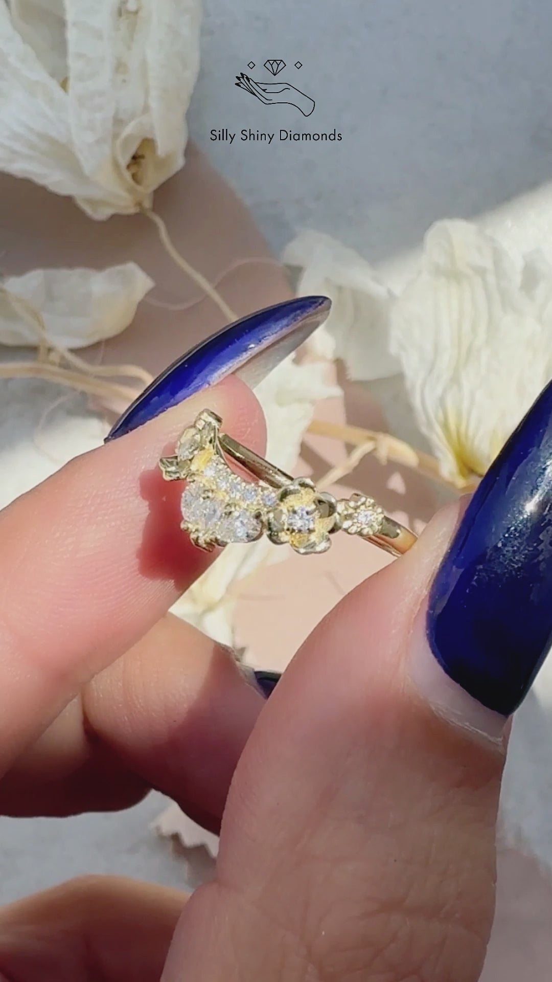 Flowers Curved Band Gold and Diamond Nesting Ring.
