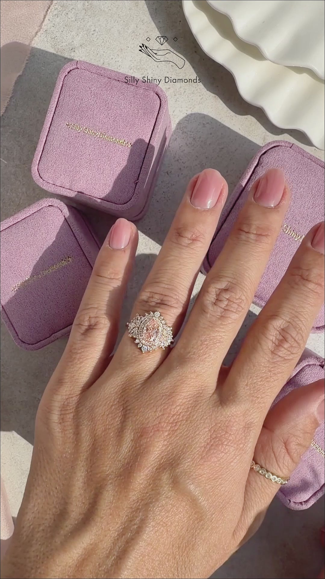 ♄ Center stone: Pink lab diamond, Oval cut, 1.0ct, VVS-VS clarity. Ā IGI certified.Ā