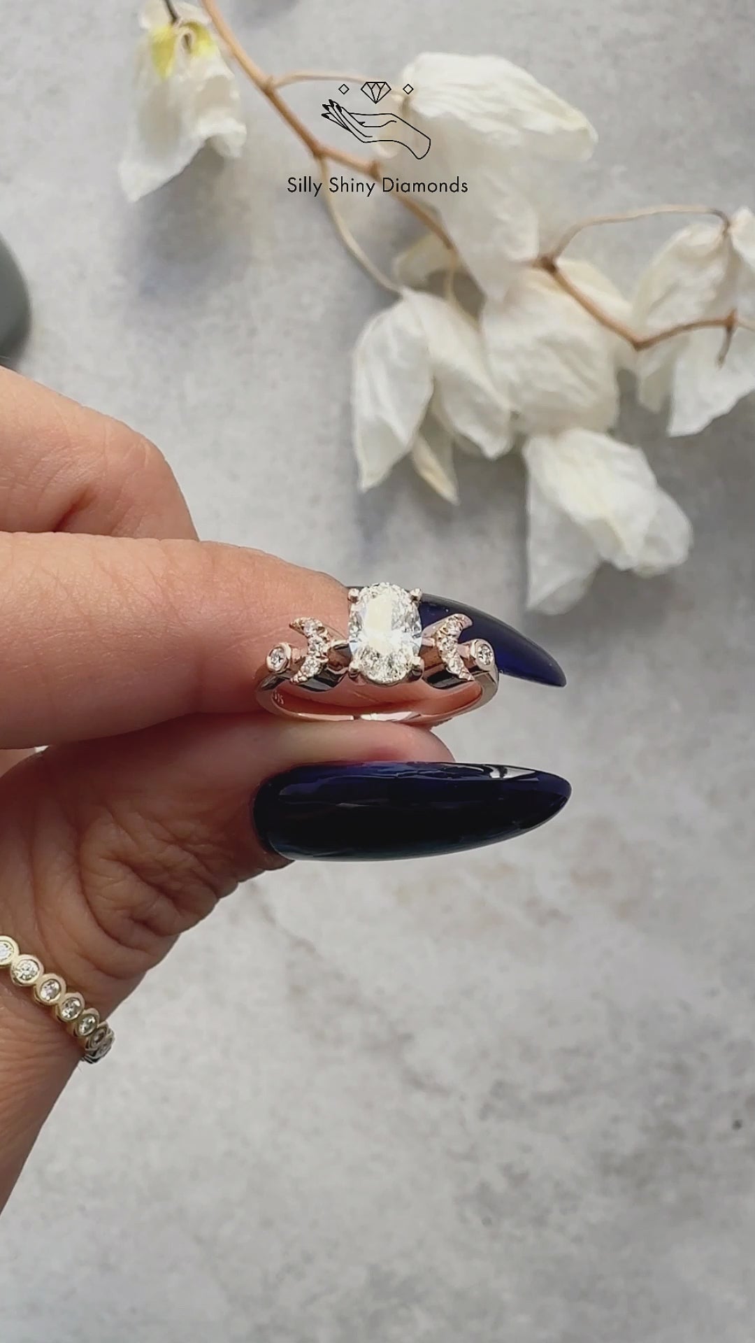 Beautiful Oval Diamond Unique Engagement Ring, Celestial Hindi Moon.