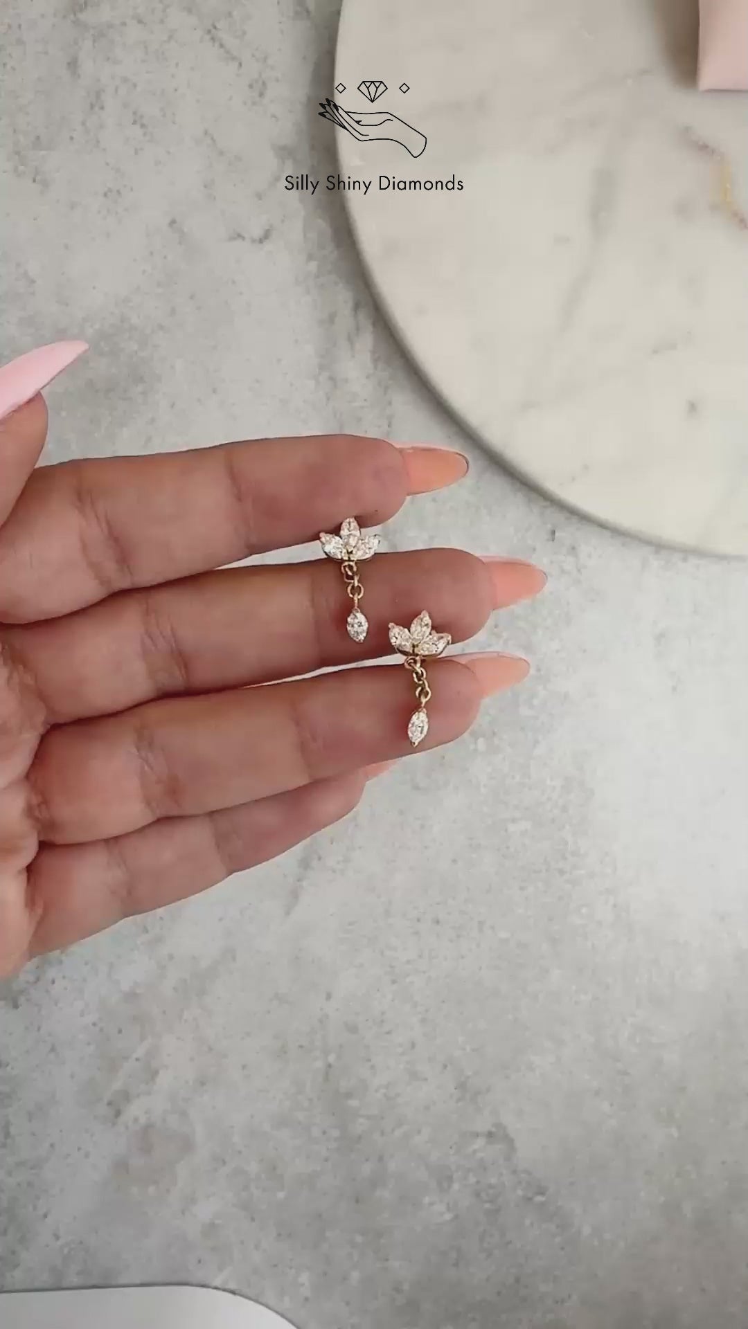 Marquise Flower Dangle Diamond Earrings with Chain ♥ Romi