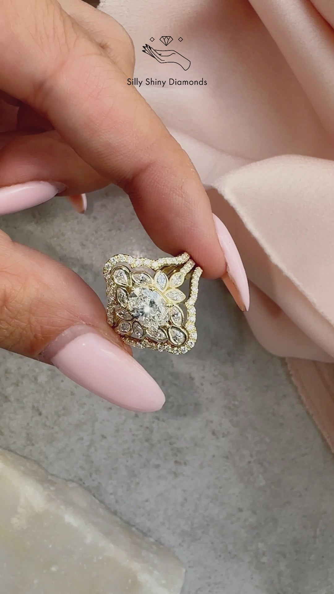 Oval & Marquise Diamonds Bezel Set Flower Engagement Ring with Pave Diamond Ring Wrap Lily #6