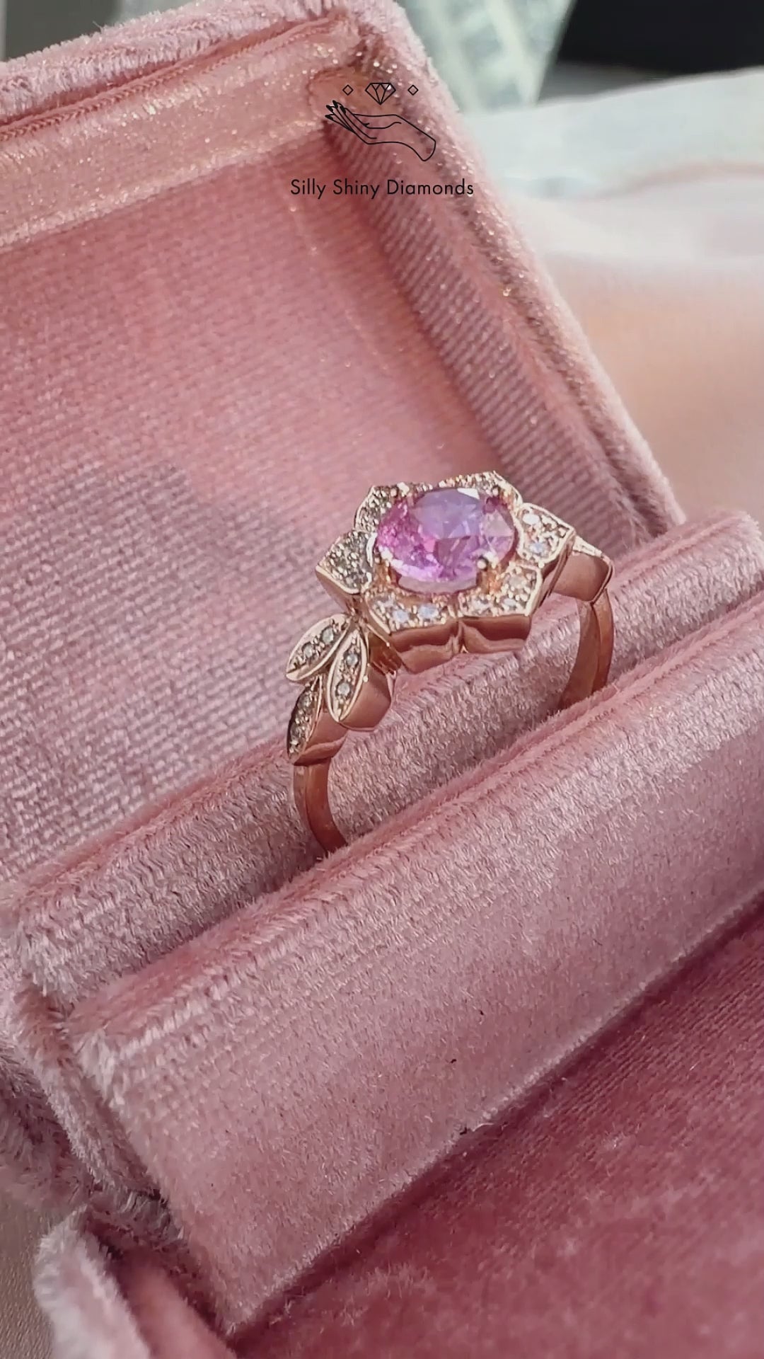 Gorgeous Pink Sapphire & Diamond Engagement Ring - "Lily Flower".