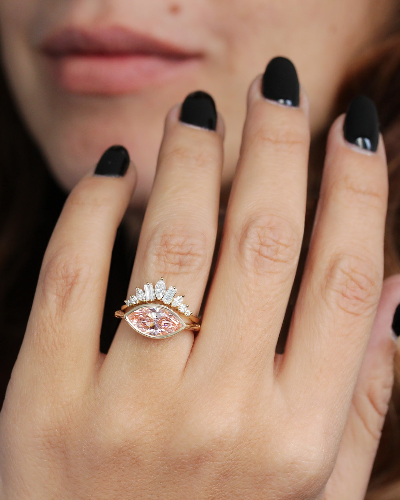 Solitaire bezel makes your diamond look bigger, feels comfortable, won’t pull on clothes, and keeps your diamond fully protected even around babies.
