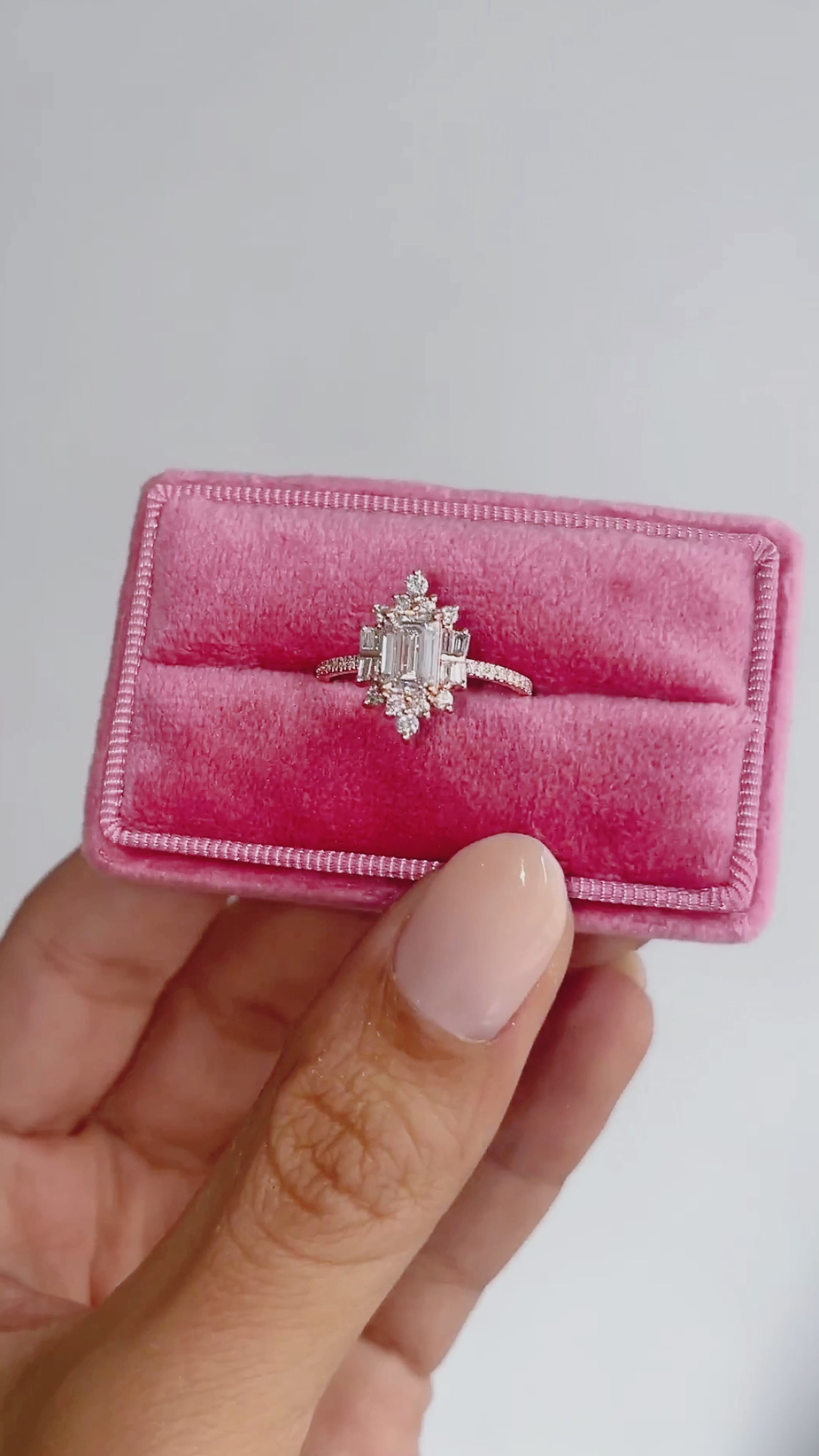 A beautiful celebration of step cut diamond dainty and delicate engagement ring.