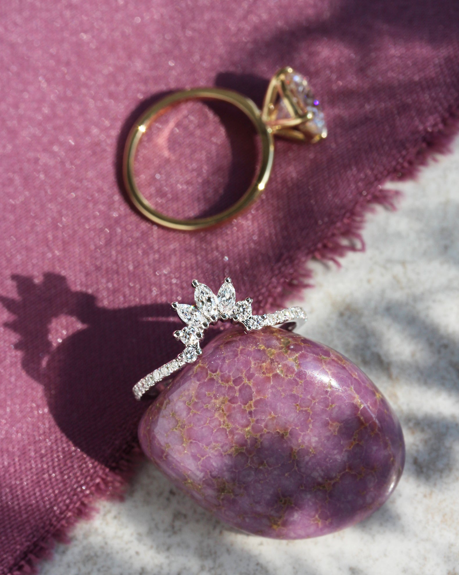 Nesting rings are designed to seamlessly complement engagement rings, wedding bands, or statement pieces. Their contoured shapes add depth and sparkle while allowing for endless stacking possibilities.