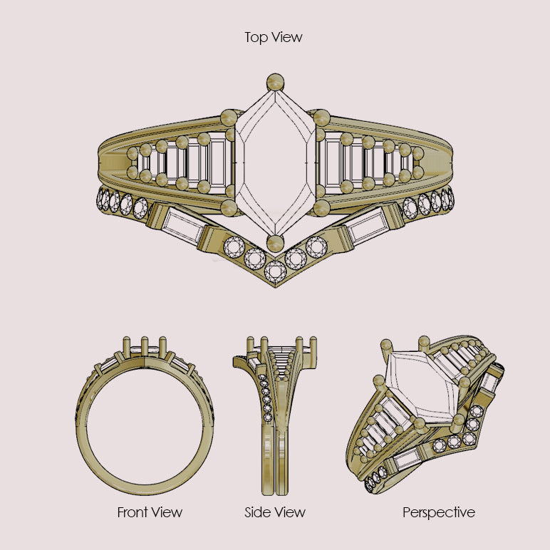 שלב זה חיוני לעיצוב טבעת האירוסין שלך. תהליך העיצוב שלי מבוסס כולו על הצורה, הגודל והצבע של האבן המרכזית שבחרת.