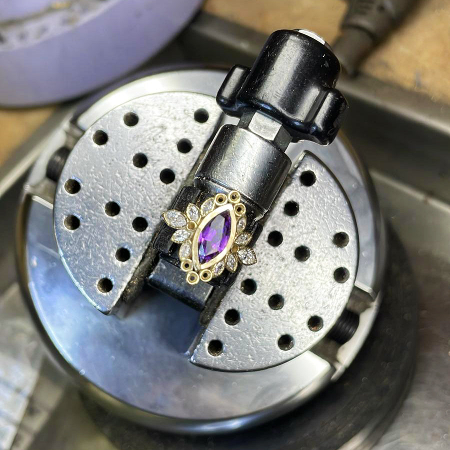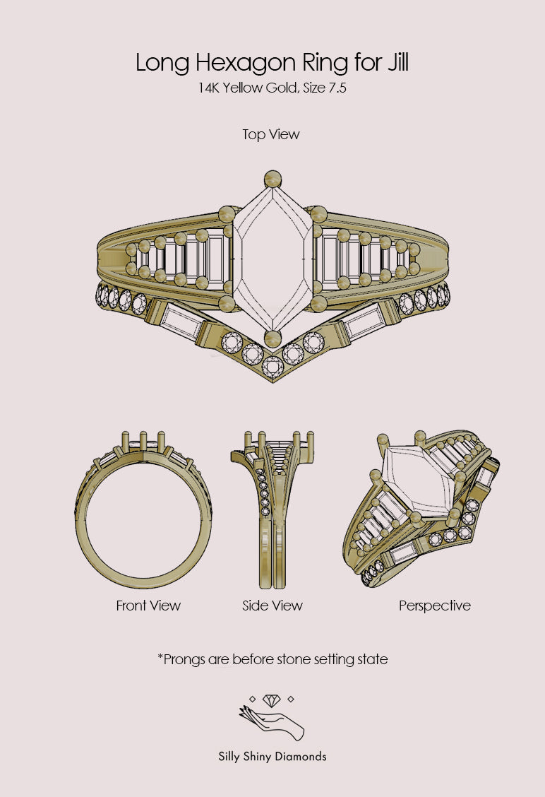 שלב זה חיוני לעיצוב טבעת האירוסין שלך. תהליך העיצוב שלי מבוסס כולו על הצורה, הגודל והצבע של האבן המרכזית שבחרת.