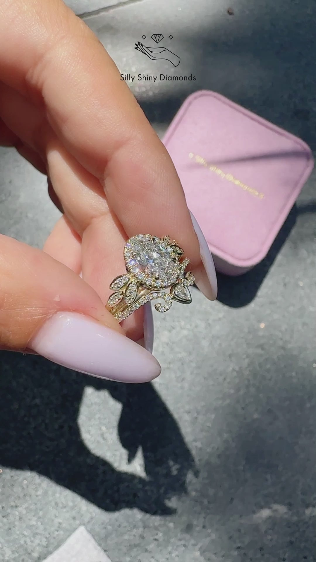 Oval diamond halo nature inspired engagement ring set - Minimal Lily Paired with Ariana Ring Set - sillyshinydiamonds