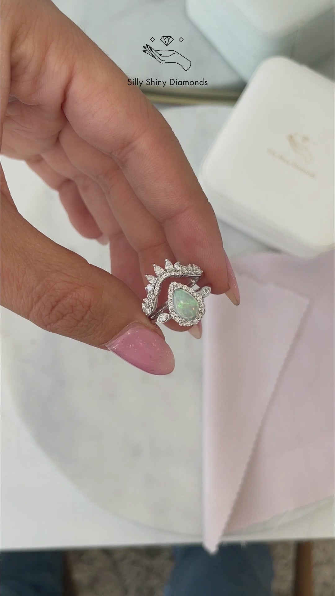Pear Opal Marquise Diamond Halo Engagement Ring - Zoe ♥